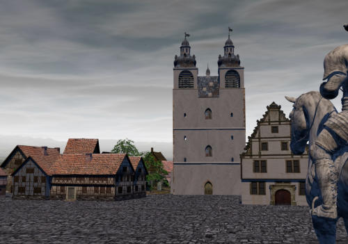 Marktkirche St. Marien noch zwei Türme, der Roland war